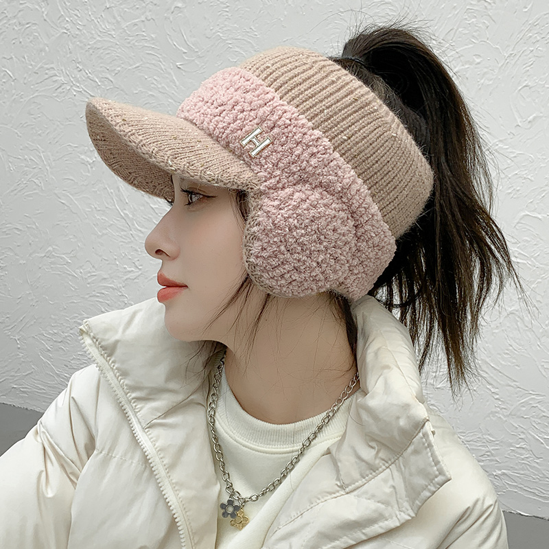 CNTANG Fashion Trend With Earflaps Empty Top Baseball Caps Lambswool Knitted Women’s Hat Autumn Winter Thicker Warm Cap
